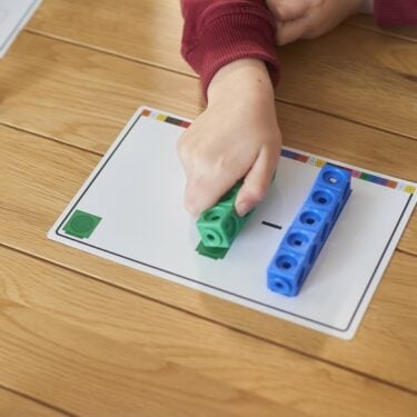 Pre-school child playing with game to improve early numerical skills