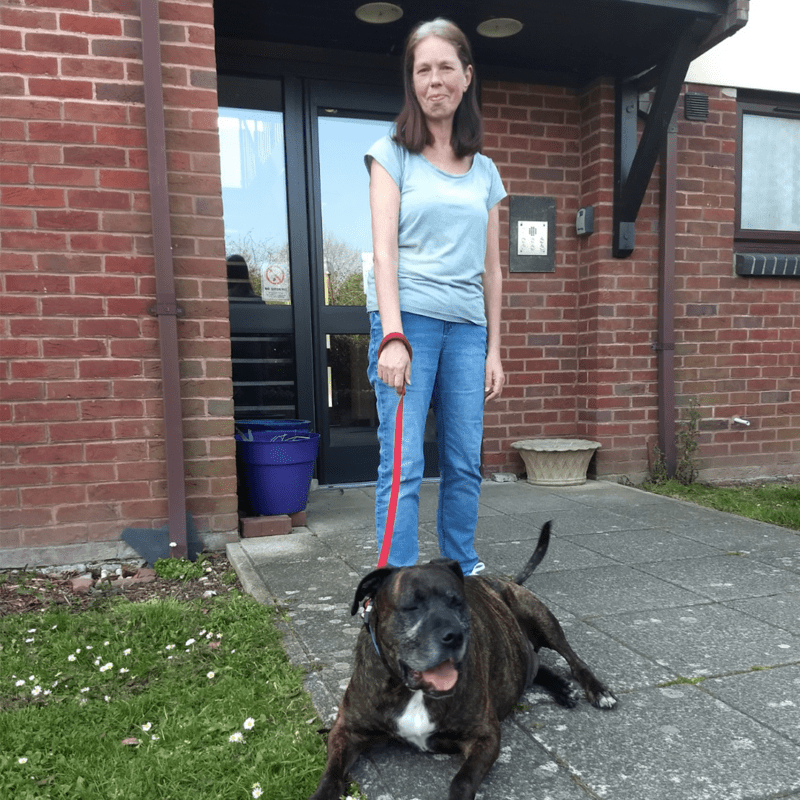 Julie is pleased to have her own place, sharing it with her much-loved dog, a Staffie-Mastiff cross called Jack. She manages her continuing immune condition with medication but began to develop OA and osteoporosis approximately 4 years ago, osteoporosis is associated with Graves’ disease. Julie and her neighbour offer mutual support, “I walk to the village to get her paper and she buys tins of dog food online so I don’t have to carry anything too heavy.”